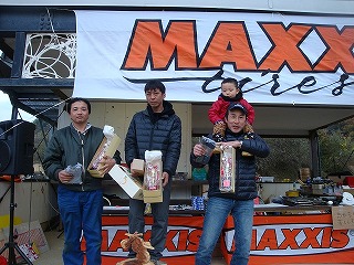 冬の日暮れは本当に早いです。もう薄暗くなった頃には表彰式。関西ならではの笑いの絶えない表彰式。ほんと皆さんコメントで笑いを取ってくれますね。その後は豪華景品抽選会。これは各出店企業さまで成り立っております。ありがとうございます。