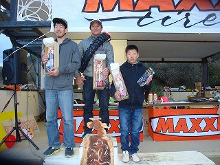 そして年間表彰でオープンAクラスのトップになったのは川口英靖選手でありました。彼にはその丸太トロフィーが送られます。なんてったってでかくて重い!その重さが年間チャンピオンなんですよ。