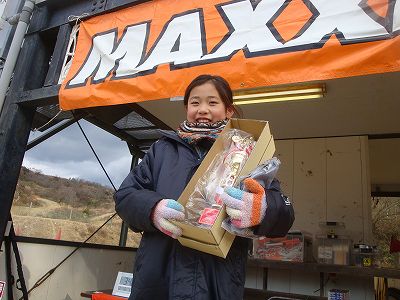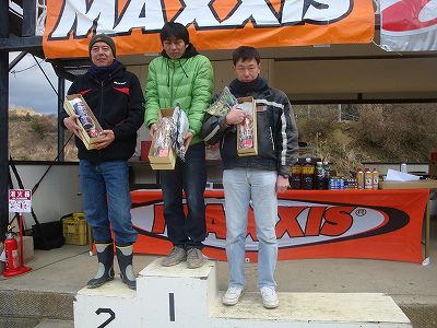 その川上に置いていかれまいと続くのは#27桑原・#22吉田・#28京谷・#14西本の順。 2周目、トップ川上は47秒とさらに差を広げて逃げる。そしてまだまだ差を空けていく。 これからアツくなってくるのが2番手争い。#27桑原・#22吉田・#11田中・#14西本・#28京谷・#16中村の6台でのサバイバル。 毎LAP順位が入れ替わる激しい争い。 しかし、順位が入れ替わるごとに1台ずつこの2位争いから脱落していく。 4周目、最初に脱落したのは#28京谷。この周7番手だった#16中村が一気に3番手まで浮上。逆に2番手だった桑原が6位に後退。 次の5周目には5分台のタイム(この日の5分台はトップの川上と中村の2人のみ)を叩き出して2番手に上がった#16中村、7周目にまさかの大失速、 ここで脱落。 代わって2番手に上がった#11田中、後ろに40秒の差をつけており、これで決まるかと思われた。 しかし田中の後ろで3位争いを行なっていた#22吉田・#14西本・#27桑原の3台が田中よりも1周10秒ほど速いペースで追いついてくる。 残り2周で40秒。逃げ切れそうなタイム差だった。 トップの#21川上は100秒の大差をつけてファイナルラップへ。2番手の#11田中も30秒差につめられながらもラスト1周に入る。 #21川上がチェッカーを受け、2番手の田中を待つ。 待つ。 待つ。 あれ? こない。。。 田中、まさかの失速。 混戦の2位争いを取ったのは#27桑原。3番手には#22吉田が入る。田中は6位でのフィニッシュとなった。 | |