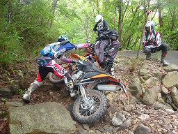 | 「あ、どうも。けんけんです。 いつもは、オフィスアクションのレース部門総合雑用係としてスタッフをしていますが、今回、初めてDS小豆島に参加させていただきました。 今回は、そんなDSスタッフ初心者としてのレポートを書かせていただきます。 実は、数年前にも一度参加するチャンスがあったのですが、季節外れの台風に見舞われ、キャンセルになってしまいました。 今回は、その時の分も楽しんでやると、意気揚々、小豆島に乗り込みました。 いや〜、小豆島、いいですね〜 フェリーで着いた途端、島特有の空気感があって、一発で魅了されました。 バイクでツーリングするだけでも楽しそうなのに、林道まで走れるなんて、DS参加者が羨ましい(笑) 会場に着いたら、すでに参加者の方がテントを張ったり、談笑したりして、会場が良い雰囲気に包まれてました。 大会本部で受付準備をしていて気付いたのですが、レース会場では当たり前にやっているアナウンスなどは、 ここには無く、必要事項を掲示板に貼りだすのみなんですね。 むむ。ツーリングイベントとは言いながらも、なんだか玄人っぽい雰囲気。参加者の方が、自然に掲示板をチェックしに来られる姿が大人のイベントっぽく感じました。 今回で22回目のデュアルスポーツとのことで、熟成したイベントなんだなあと、あらためて思った次第です。 初参加の方もたくさんおられましたが、同じように感じられたのではないでしょうか。 スタート時間を迎え、飲料水と携帯電話のチェック。タイム記入とCPスタンプを押して皆さんを送り出します。 うん、ラリーっぽくてかっこいい(笑) 飲料水の量が規定より少なかった方が若干名おられましたが、林道に入ってしまうと自動販売機はないですからね。 ちょっと厳しくチェックさせてもらいました。 バイクは、トレール・エンデューロ・トライアル・モタード・ミニバイクなどバラエティに富んでました。 年に一回、このDS小豆島を走るためのバイクで来られてる方も。 個人的には、ランドネがかっこよくて、欲しくなってしまいました(笑) 皆さんを送り出してからは、本部で緊急の事態に備えて待機です。 ほどなくして、マーシャルスタッフが一名帰還してきました。 どうやらチェンジペダルを無くしたようです(汗) 手持ちの工具とパーツで応急処置を施して、無事に任務に復帰することができました。 うん、ラリーメカニックっぽい(笑) 一仕事終えて、お楽しみの昼食です。お昼ご飯は、DS小豆島といえば、はまゆうさんのお弁当! 初めて食させていただきましたが、とても美味しかったです。 美味しいだけじゃなくて、この日の気温を考えて、少し塩気を強く味付けされてました。 細かな心配りが嬉しいですね。 スタッフも昼食を終えて、バックマーシャルが出動しようとしたタイミングで、大幅に遅着した#104さん参上。 なんでも三宮まで来て、受理書を忘れたことに気付いて、琵琶湖県まで取りに戻ったそうな・・・ まあ、事故が無くて何よりと、何とかスタート出来ました。 午後2時を過ぎた辺りから、少しずつライダーの皆さんが戻ってきました。 皆さん、晴れやかな笑顔で戻ってこられて嬉しかったですね。 ちょっと顔面に傷を負った人もいましたが、それはそれで何だか楽しそうにされていて(汗) まあ、そんなこんなで、一日目は無事に終了しました。 すこーしの雨が降りましたが、気温が下がって良かったんじゃないかなと思います。 翌日のコースコンディションも良くなるだろうし。 翌日の準備を終えて、スタッフも撤収。夜のエンデューロ・・・もとい、スタッフミーティングの時間です。 晩御飯もはまゆうさんの豪華お弁当を戴きました。 小豆島には、おいしい食べ物が沢山ありますが、これは絶対お得なお弁当です。と断言します。 いや〜、やっぱり来れて良かったな〜(笑) スタッフミーティングでは、コンディションを考えて、翌日のコースの小変更を検討しました。 走り応えのあるコースも使うということで、楽しくなりそうな二日目です。 明けて二日目の朝は、夜半まで降った雨も上がり、徐々に日が差してきました。 林道区間は程よいグリップで良い感じじゃないかなと想像しながら、1DAY参加の受付開始です。 実は、タイムスケジュールに朝の受付時間を記載していなかったのですが、皆さん、さすがですね。 スタート時間から逆読みして受付に来てくださいました。ありがとうございます。 前日同様、スタートチェックをして、昨日とは違うルートに皆さんを送り出します。 今日も楽しい一日になりますように。 本部スタッフは、ここから抽選会に向けて準備を始めます。 今年は、前夜祭が会場の都合で中止になったので、抽選会は日曜日になったんですね。 抽選で当たる豪華景品は、MCジャパンさん・ジャペックスさん・マキシスタイヤさんのご協力で本当に豪華です。 お昼前ぐらいからライダーが続々と戻ってきました。 走り終えた後のお楽しみは