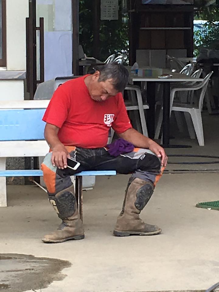 | はい、主催者3号、おやじちゃんです。 前夜祭では2年ぶりに前足バンドをやらせていただきました。 例年ならオレにも歌わせロー!と乱入者が現れるのですが今年は来ませんでした。さみしいじゃないですかー。。。その分好き放題やらせていただきました。おまわりさんまで見に来たとかナントカ。。。 いや、すみません。いささか騒ぎすぎました。 夜中までキャッキャウフフが続いた前夜祭を終えていよいよレース当日。カンタンにではありますがふりかえっていきましょうか。 まさかのタイムアタック予選 昨年はタイムアタックでグリッドについてもらったはいいもののスタートはじゃんけんに勝った人からという変則スタートでした。同じようなことをするとさすがに今年は怒られるのではないか、という小心者の実行委員会、スタートはちゃんとやろうということになりました。 でも、それじゃロクフェスらしくない。どうしようかと考えていたところにプラザ阪下がなにやらセクションを作ったとの情報。 本戦のコースは固定なので変えるわけにはいかない。 どうするか・・・・ 予選で使うか!そういう話に。 しかしあのぶっ刺しセクションは難易度が高すぎる! だよな。。。。難しすぎる。 でもせっかく用意されたものを使わない手はない。どうすればみんなが通過できるセクションとして使えるのか。。。 と、下見でセクションの上で考えているところに別のスタッフが上がってきました。 「歩いて登るのもしんどいな、コレ。」 !!!! それだ! と、いうことで歩いて登ってもらえばいいよね、となりました。 歩いて登るにはバイクを置かなければいけない。 歩いている人とバイクが交錯しちゃいけない。 歩く区間で時間がかかって進行に影響しちゃいけない。 その辺を考えたら今年のように5台ずつのアタックとなりました。 ふたを開けると若いライダーが元気。バイクの区間よりこのセクションの区間でタイムが決まる、そんな予選となりました。 ポールポジションは#104チームKAME&Brat's。セクションでスパッと中学生を抜き去る姿にオトナの本気を垣間見る予選となりました。 ![]() いざ、決勝 とあるライダーからあるコトに対する協力の依頼。 あのハッピ着た3人組のバイクにイタズラするのでその時間が欲しい、という依頼。 主催者がやると問題ですがな、そんなん。好きなようにしはったらエエがな、と好きなようにやってもらいました。そしたらこんな感じに(笑) と、いうわけでレーススタートです。 まず戻ってきたのはショートコースのモペットアイアンマンの3台。 続けて#106CRキャブ、#105アクションレーシングが戻ってきました。ここでようやくチームワッショイがスタート。トップから1周遅れ。時間にして270秒。 ま、6時間(21600秒)の中の270秒ですから、取り返せる差ではあろうとおもいます。 2周目、はやくも#105アクションレーシングがトップに立ちます。全員中学生で挑むロクフェス、早くも逃げにかかっていこうというのでしょうか。すでに2番手に13秒の差をつけてきました。そんなペースで85ccのマシンは最後まで持つのかどうなのか? この中学生チームに勝負を挑むべく上がってきたのが#201YSP真田。10秒後ろまで近づくがライダー交代のため後退。 つづいて仕掛けてきたのは#103CHARGER。7周目にアクションレーシングがライダー交代を行なっている間にトップを奪い逃げまくる。一時は90秒近い差にまで広げた。 しかしこのあと互いのチームがライダー交代を行い、アクションレーシングが猛追。15周目にあっさりとトップを奪い返す。 アイアンマンでは#3辻谷が「毎年コレは修行ですねん」と近年はこのレースにだけしか出ていないというものの、今年も狙うでクラス優勝、といわんばかりに総合3位を走行。しかしすぐ後ろには#26川口がピタリとついている。今年は楽はできないのか。。。 ヤツらがキタ!前編 レース開始から90分、19周目。トップは#105アクションレーシングで変わらず。後には#3辻谷>#26川口>#116MOTOWIN RACING>#65RG3 SHINKO>#59ティスレーシング>#103CHARGERとつづく。 その後ろにはなんと#110チームわっしょい2016。1周遅れのスタートから90分でここまで上がってきた。3人の顔ぶれを見ればそろそろこなくちゃね、というメンツではあります。さらに翌20周目には2つ順位をあげて6位に浮上。さらに26周目にはトップの#105アクションレーシングをパスして周回遅れを返上、同一周回となる。さらに2番手の#3辻谷をロックオン。28周目にはとうとう2位に浮上。 この時点で残り3時間30分。逆転は充分にありえるのです。さあ、どうなる? CHARGERの巻き返し チームワッショイ2016が猛追を見せる後ろで全体のトップタイムを連発して追い上げるチームがいた。 序盤にトップに立っていた#103CHARGER。25周目にライダーが冨田に代わって以降モーレツな追い上げを見せ、12位から8LAPで一気に3位まで上り詰める。 今大会のベストラップ上位3チームはこんな感じ。