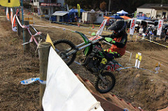 今年はゲストライダーにJNCC、JECともに最上級カテゴリーを走る真田治、2015年アクションエンデューロチャンピオン野口久友、わがアクションレーシングからは来期IBで全日本MX参戦の山田太陽、そしてハードエンデューロライダーゴッシーこと五嶋隆とそうそうたるメンバーが出走しました。 ホールショットは#18真田。しかしトップで帰ってきたのはヤングガン#39山田太陽でした。 それぞれ上級コース、曲がり階段には行かず右側の直登階段をチョイス。曲がり階段側は登れればトレーニングコースの走行が免除となり最短コース。直登階段はトレーニングコースを半分走るコース。 曲がり階段は難易度が高すぎて2つ目の階段が登れない。なので横の土手を登っていいことになりました。ただし、トレーニングコースを通らなければいけないという条件付きで。 序盤、黙ってましたが要は曲がり階段いけないなら直登階段のほうが早く行けたんですね。 ずっと直登階段を登っていた山田太陽はどんどん後続を離していったのです。 かといって直登階段が決して楽ということではありません。